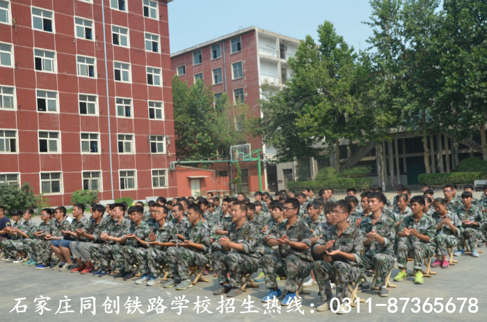 铁路学校军训期间,学校协助教官从学生内务抓起,从床上到地下,每一件物品都按照军营的要求去布置,去落实;学生处、教务处一丝不苟,一项不漏,每天早晚两次检查内务;课余时间教官与学生互动,教官们不仅教学生内务,还教学生唱军歌,打军拳,做游戏。尤其在军训过程中,他们不畏酷暑,不怕烈日,不怕流汗,有的同学动作不协调,教官就实行单兵训练,一个动作一个动作地教,使学生树立了自信,克服了自卑心理;相关人员与教官、学生同吃住,每天跟踪回访,了解他们的苦乐,帮助他们解决生活上和思想上的难题,使学生感受到军队严格与学校人文管理相融相和,人武学校郑队长深有感触地说:同创中专学校招收的学生是我们见到的最好的学生,也是最能吃苦、训练效果最好的一批学生。