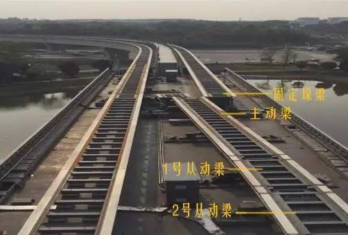 中低速磁浮道岔由固定垛梁、主动梁和从动梁等部分组成,为箱型钢梁结构。道岔由安装在主动梁底的电机带动主动梁和从动梁整体移动,朝开通方向接入预定进路。