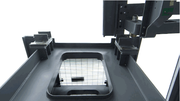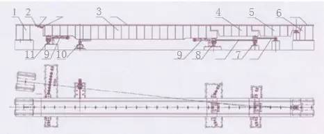 移动梁采用连接构件,每段移动钢梁下均有台车支撑,驱动电机位于道岔主动钢梁的下方,通过电机驱动主动梁下的台车,将主动梁推至固定垛梁与主动梁的接缝处,到位之后完成移动梁的锁闭动作,这样就实现了线路的转向,车辆就可以顺利抵达预定位置了。