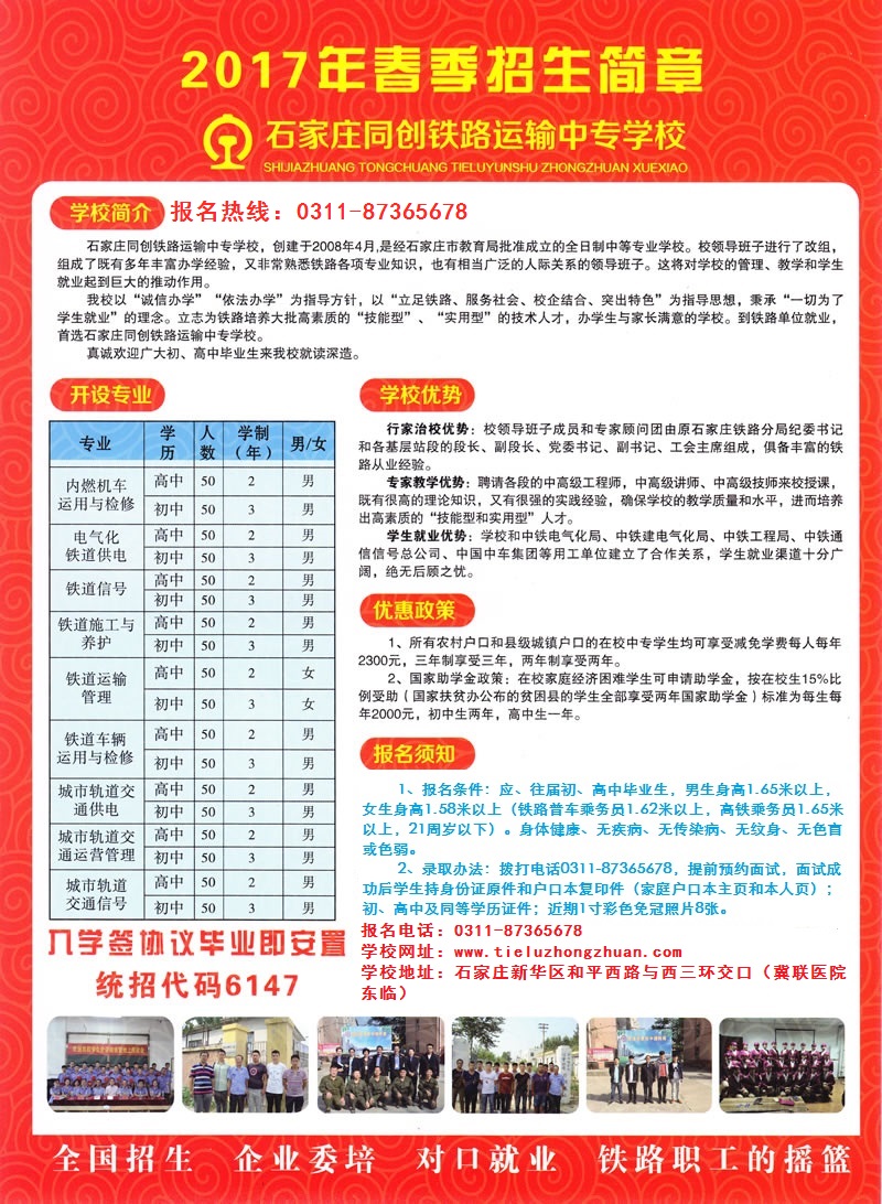 放假期间如有咨询石家庄铁路学校招生问题可拨打24小时值班热线:18803116861,17732150507(微信同号)