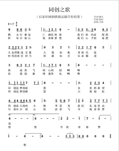 石家庄同创铁路学校的最新校歌《同创铁路学院之歌》来啦!这首歌是董事长师凡亲自作词作曲,由著名歌手万棒演唱。这首歌感应着同创人共同的心跳和律动,字里行间也展现出董事长师凡先生艰苦奋斗年少创业的过往画面。这首歌凝聚着同创人共同的责任和信仰,歌词里也传递了“同创是梦想开始的地方”这一深刻的理念。“同创追梦的摇篮”~我已经会唱了~你呢?