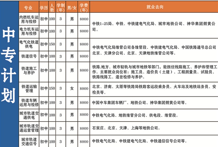 2,车是指车站车务段需要的车站调车员,值班员等铁路车辆专业人才,如我校的铁道车辆运用与检修。